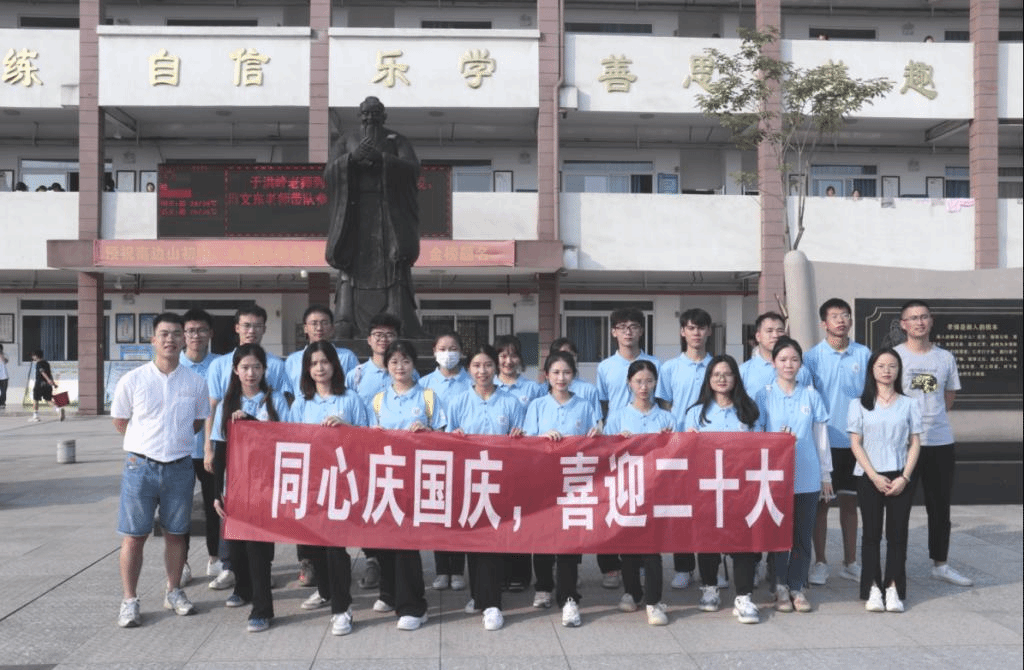 为庆祝中华人民共和国成立73周年,激发青少年爱国爱党热情,9月27日下午,语言文学学院师生代表赴六塘初级中学开展“同心庆国庆,喜迎二十大”爱国主义教育活动。