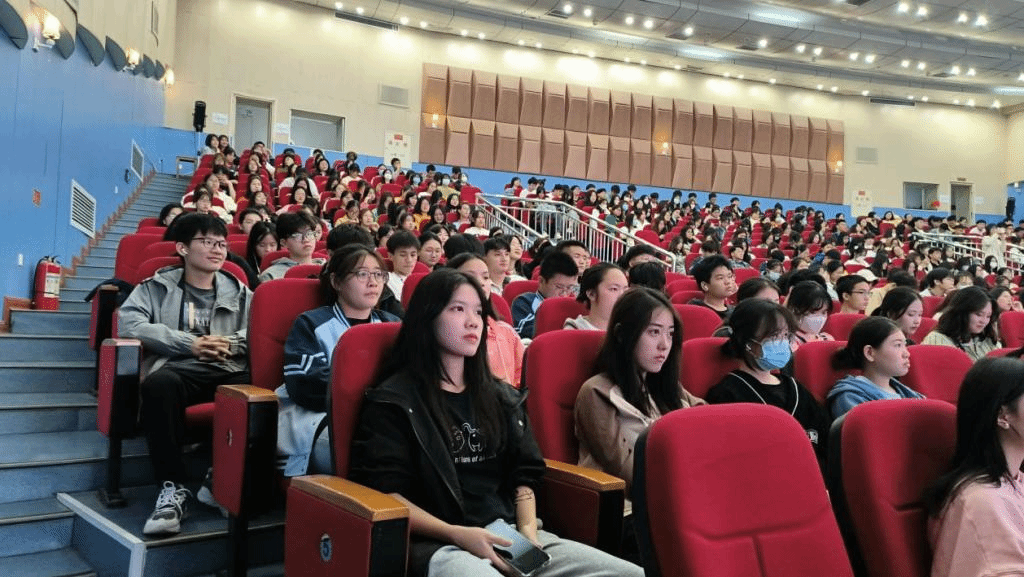 讲座开始,彭谦同学为同学们讲解了广西每年生产垃圾的产量,让同学们了解到目前垃圾处理的严峻形式,引导他们培养低量投放的生活理念。接着,她从垃圾分类的原因、如何分类垃圾和垃圾分类的原则三个方面,向同学们分析了不同种类垃圾的危害性,以及垃圾分类对减轻环境污染、减少疾病传播、节约资源的意义。随后,她随机邀请四名同学上台进行垃圾分类的互动测试,使同学们对垃圾分类的知识有了更全面、更深刻的认识。