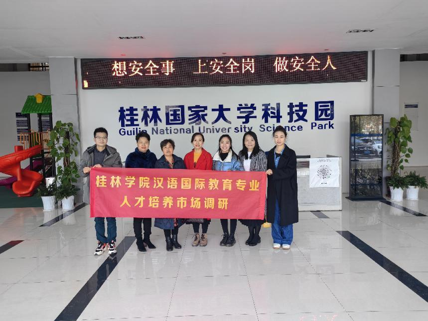 为进一步深化教育教学改革,优化专业人才培养方案,提高人才培养质量,落实专业培养目标,优化汉语国际教育专业人才培养方案。2023年2月16日,汉语国际教育专业教师在何玲副校长、人文学院陈锴副院长和韦微副书记的带领下前往桂林国家大学科技园开展专业调研活动,联系毕业生实习、就业工作。