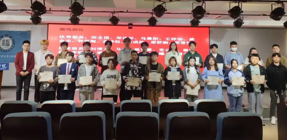 随后,大会对上学期先进个人、工作积极分子以及参赛获奖者和漓鸣剧社演职人员进行表彰,由参会指导老师颁奖。