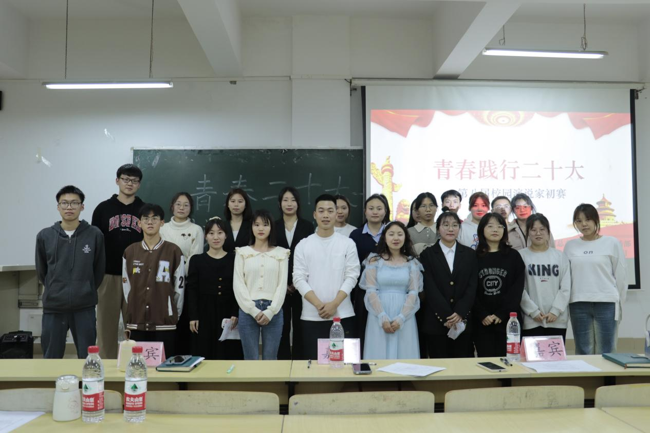 为学习宣传党的二十大精神,引导青年学生全面了解我国科学发展的新成就,进一步坚定跟党走中国特色社会主义道路的理想信念。3月9日晚上,人文学院在1314教室举行了“青春践行二十大”第八届校园演说家活动初赛。本次比赛由人文学院团总支副书记邓克鹏老师,辅导员徐小媛老师和唐云老师担任评委,我院共23名参赛选手参加此次比赛。