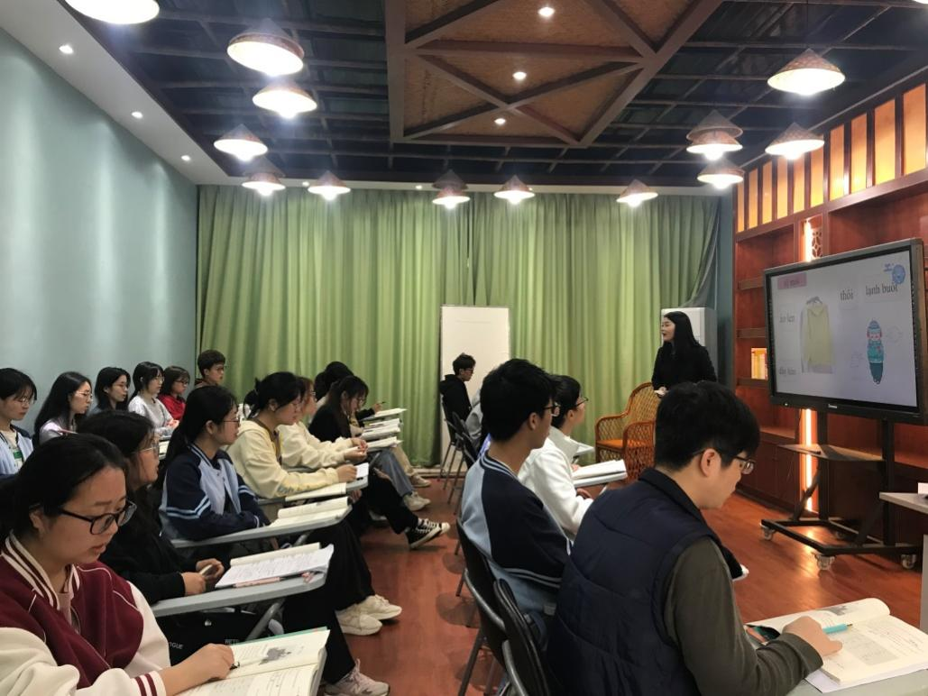 近日,在我校越南馆迎来了越南语教研室本学期的公开课。本次公开课由越南语教研室主任阳琦兰老师授课,授课对象为2022级越南语专业的同学,授课内容为泛读课《Tình Thân -- Mua Áo Len亲情--买毛衣》。