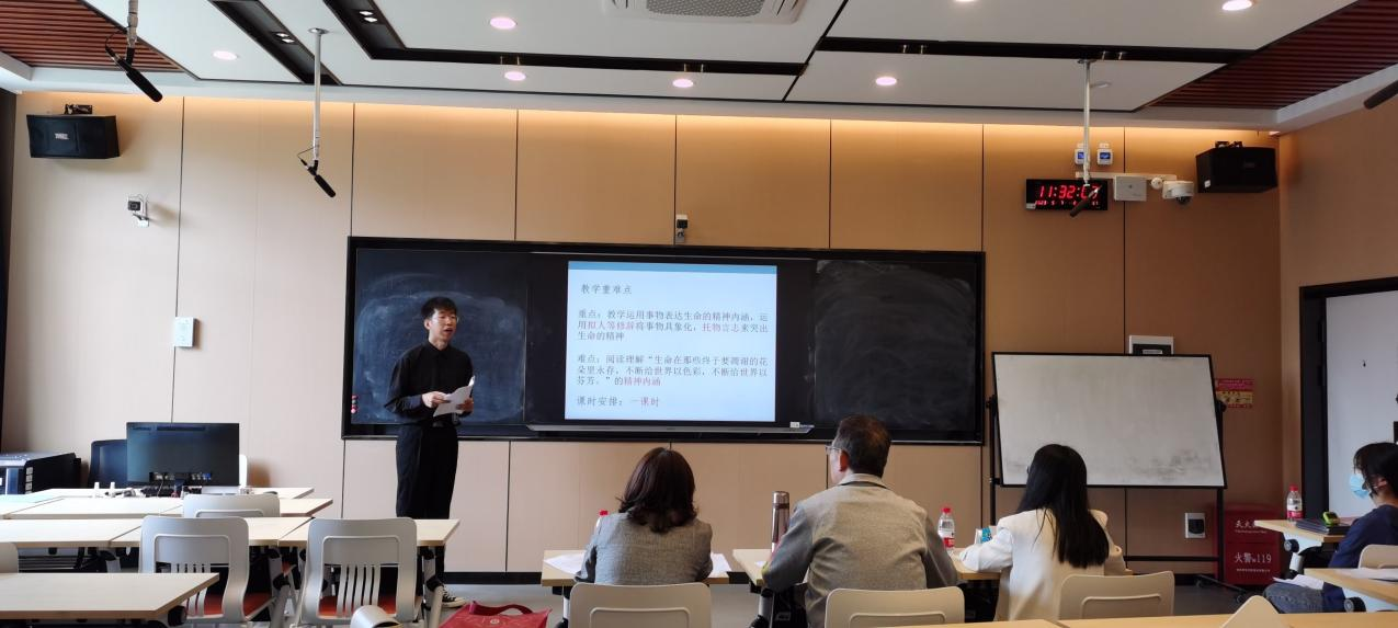 本次比赛分为线上抽签上台顺序、现场备课和当堂模拟讲课三部分。5月6日,选手们集中抽签上台讲课顺序。5月7日比赛开始前,主持人宣布比赛规则,评委给出讲课的具体篇目,分别为初中组课文《永久的生命》,高中组课文《我与地坛》。随后,选手们依次按时进入教室进行限时备课,并分组进入2203和2202教室进行模拟讲课。