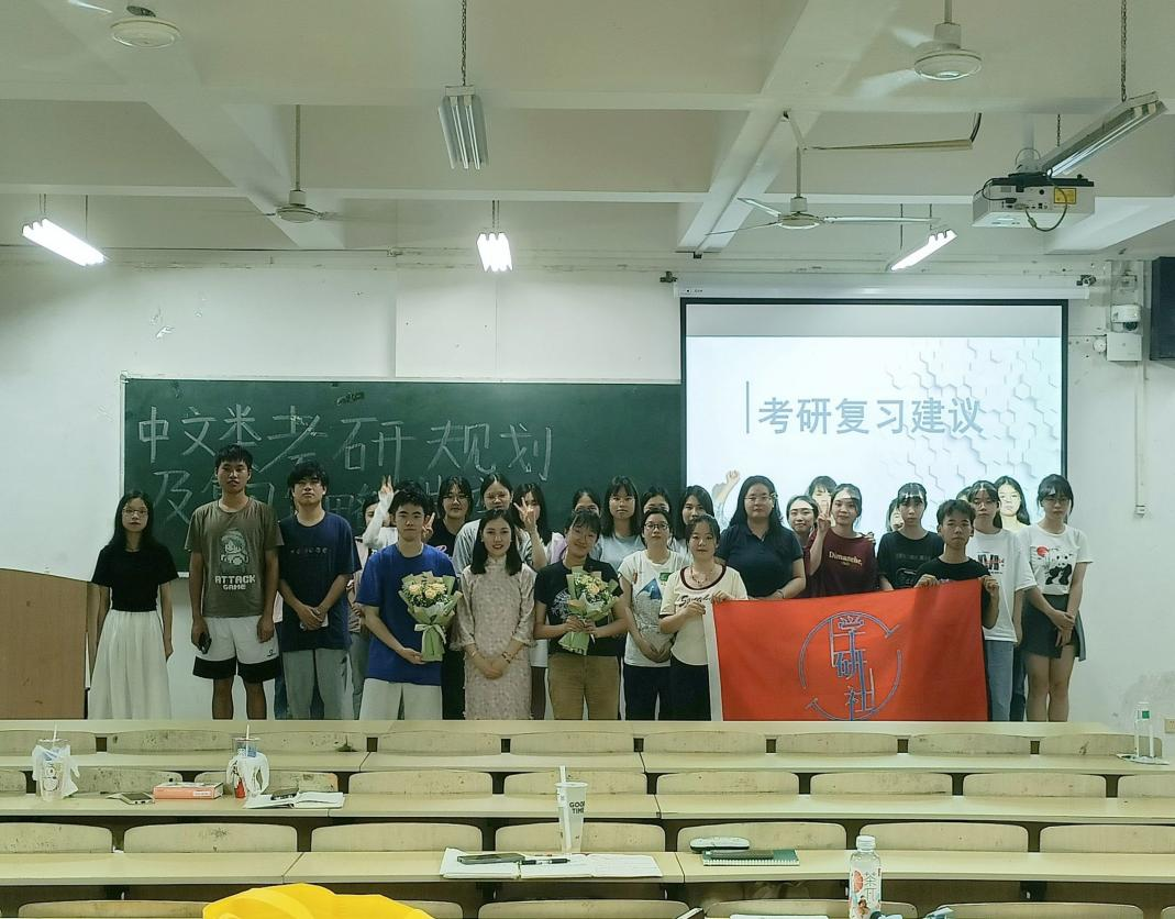为帮助2024届考研学子们做好考研复习规划,我校人文学院学研社于2023年5月30日晚在至善楼1207教室开展了以“中文类考研类规划与复习策略”为主题的讲座,本次指导会特别邀请了广西师范大学语言学及应用语言学硕士研究生赵圳辉学长和毛丽君学姐。
