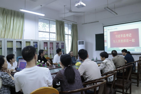 图:与会人员共同学习习近平总书记关于人民教师的重要讲话精神