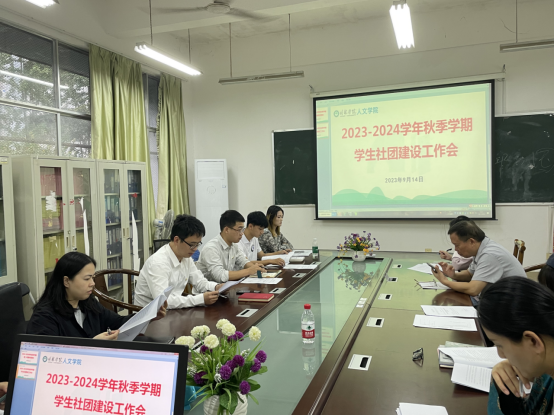 随后,学院社团管理负责人就《桂林学院学生社团建设管理办法》进行领学并布置新学期社团重点工作。与会人员围绕学生社团管理机制、注册登记、组织建设、活动管理、工作保障等五个方面进行交流讨论。