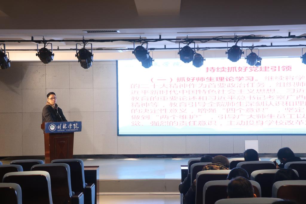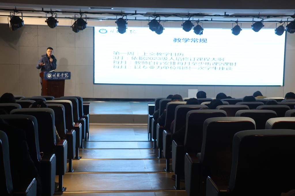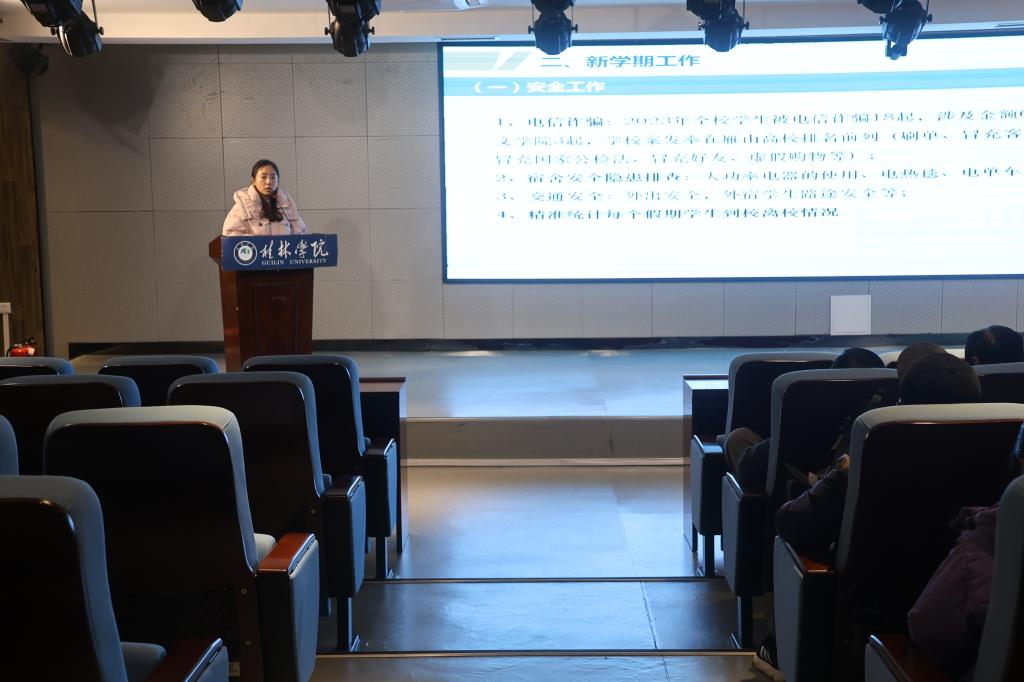 学院党总支副书记韦微对学院2024年学生工作进行布置,并就学生返校安排、访企拓岗促就业等近期重点工作作了具体说明。