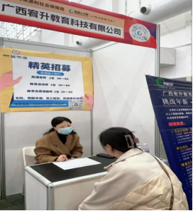 在招聘会现场,教师们进行英语专业人才需求调查,积极与华图教育、广西宥升教育科技有限公司、桂林市聚贤教育培训学校、桂林市小花朵朵艺术培训学校等多家用人单位进行了深入沟通,充分了解用人单位对英语专业毕业生的要求。同时,向用人单位积极推荐我院毕业生。