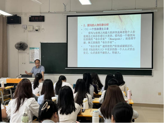 熊焕颖老师首先上了一堂生动的《外国文学》公开课。熊老师严谨的教学态度、激情四溢的教学风格、深入浅出的讲授方式,带领同学们领略了法国文学经典《包法利夫人》的独特魅力。接着,教研室主任钟锟老师组织教研室老师对熊老师的公开课进行评课。老师们充分交流了对熊老师课程的内容、教学方法以及师生互动等方面的心得。最后,莫其逊教授对本次公开课研讨会的成功举办表示肯定,他指出,通过此类教学研讨活动,不仅能够提升教师的教学水平,加强教师间的交流与合作,也为学院教学质量的提升提供了有力保障。