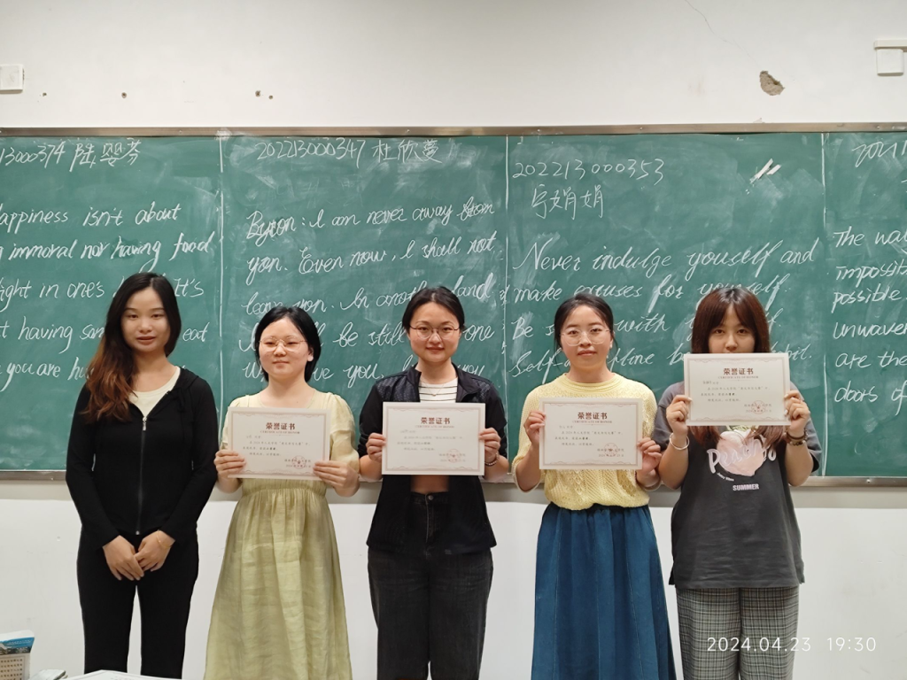 为进一步提升英语教师教育课程思想政治素质和专业能力,推进教师的专业发展和提高课程的教学质量,人文学院于4月23日下午在至善楼3509教室举行了英文书写大赛决赛。人文学院副院长张超锋及陆海峡、唐让操、闭彬彬三位老师担任本次大赛的评委,比赛由学院英语教师教育教研室和行知社共同承办。