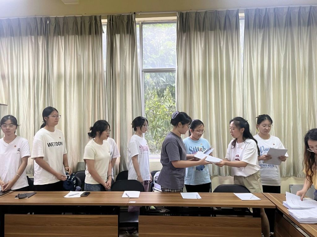 韦微为新发展党员发放《中国共产党章程》和《中国共产党纪律处分条例》,要求新党员们要加强学习,严格遵守党规党纪。