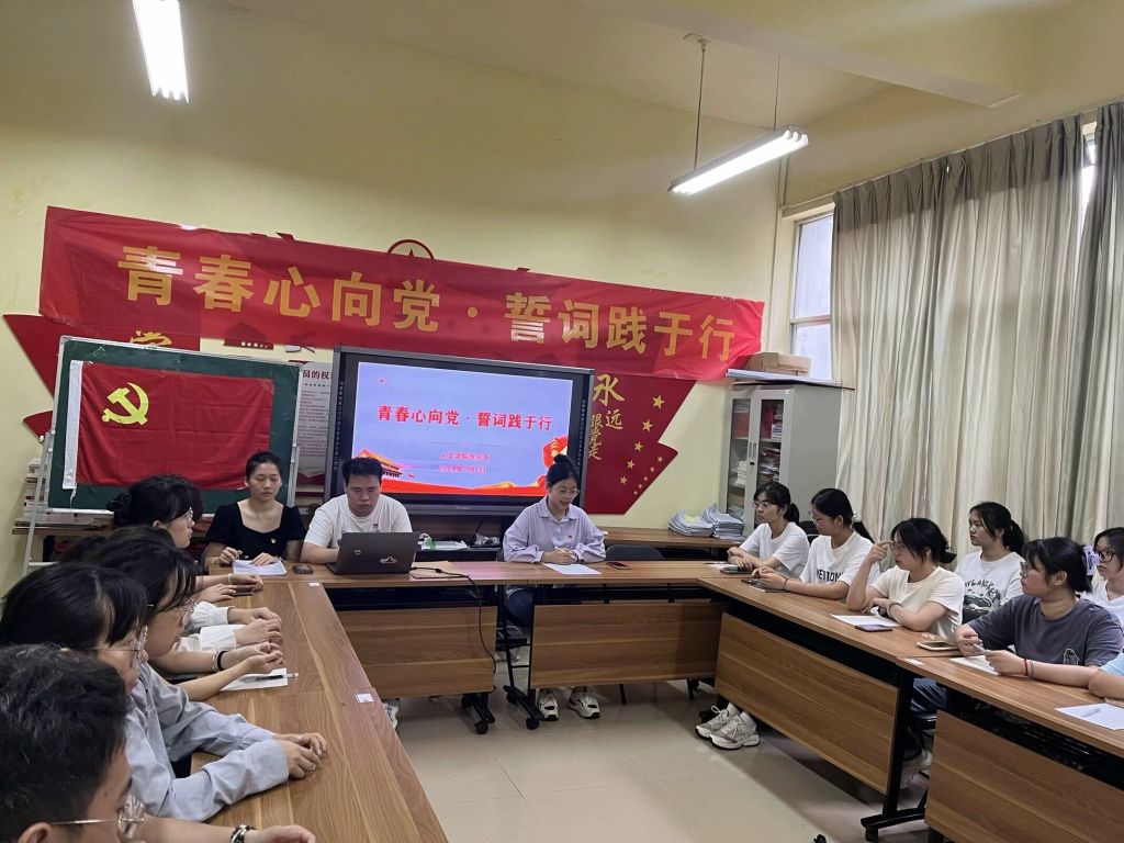 为引导党员坚定理想信念、牢记党的宗旨,进一步强化新党员的身份认同,庆祝中国共产党成立103周年,7月1日中午,人文学院在党建活动室举行庆“七一”暨新发展党员入党宣誓活动。学院党总支书记、副院长庞一飞、党总支副书记韦微、学生党支部书记唐云、王亮出席活动。2024年上半年新发展的15名学生党员参加活动。