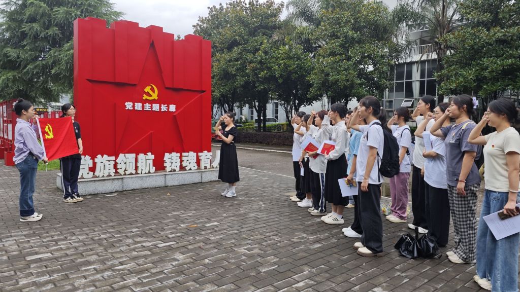 随后,全体党员一起参观学校党建文化长廊,庞一飞向新党员们介绍中国共产党的光辉历史和学校党建工作的主要成果。