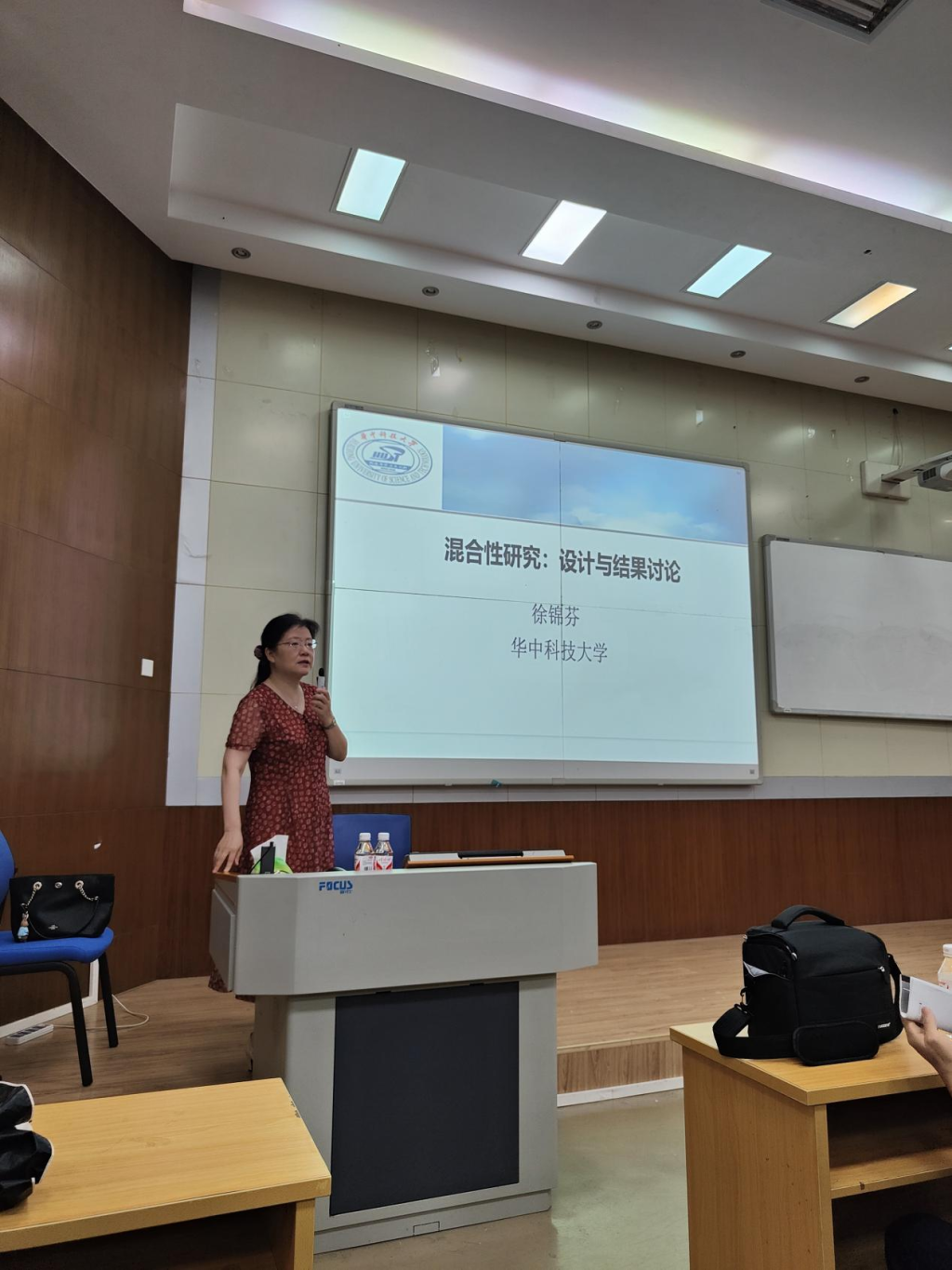 讲座中,徐锦芬教授围绕“混合性研究:设计与结果讨论”及“学术论文修改和投稿”两大主题,展开了深入而细致的分享与交流。在第一个主题中,徐教授首先对定量研究与定性研究进行了总结回顾,进而引出了混合性研究的重要性及其设计思路。她详细阐述了如何巧妙地结合两种研究方法,以更全面地揭示研究问题的本质,并分享了多个混合性研究设计的审改案例,为教师们提供了宝贵的实战经验和借鉴。