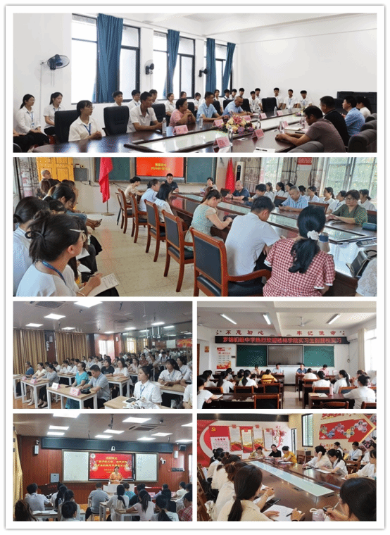顺利抵达实习单位后,多所学校相关领导先后召开实习教师见面会,对我院实习学生的入驻表示欢迎,简要介绍学校的办学理念、教学实际、校风校纪、校园环境以及实习注意事项,分配实习班级与实习指导教师。实习学生们在见面会后立刻调整状态,投入实习工作,展现桂院学子向学向善的良好风貌。