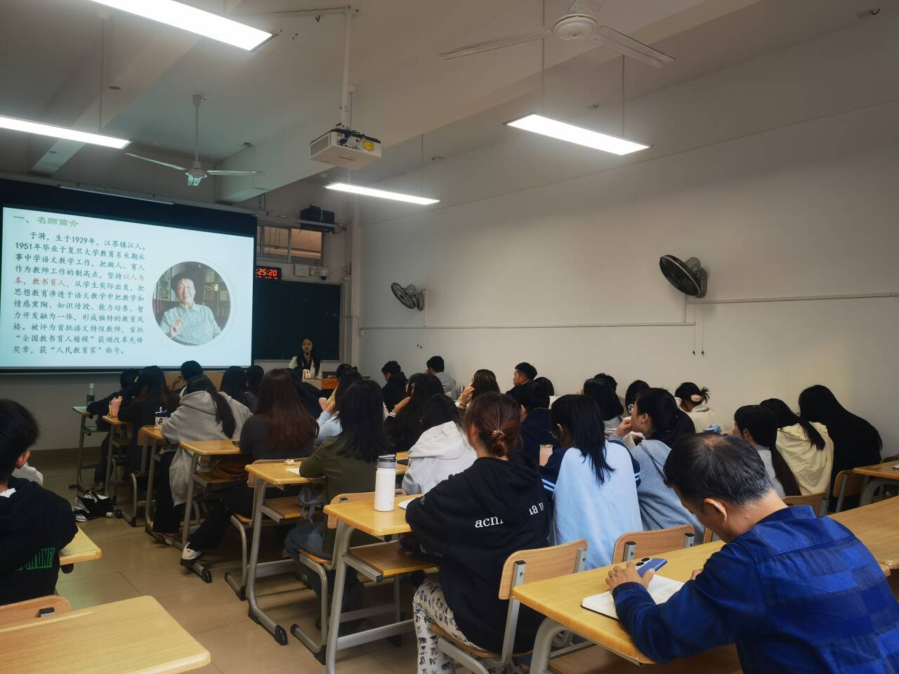 课中,朱秀群紧抓教学主题,借助生动的教学案例分析、直观形象的教学视频,激发学生的学习兴趣,系统介绍于漪老师的语文教育思想核心——教文育人,围绕“育什么样的人”“怎样育人”“为什么要育人”等主要问题,借助具体的执教片段,深入分析教学内容,教学效果良好。