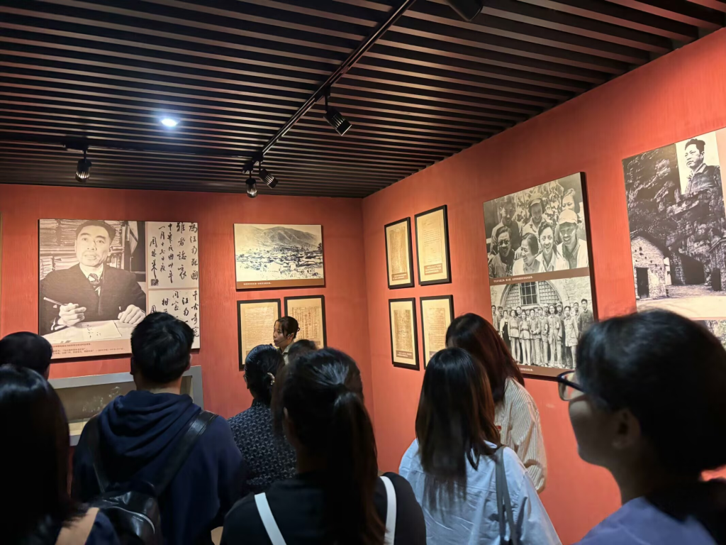 在工作人员引领下,同学们有序步入纪念馆,瞬间被带入那段波澜壮阔的抗战历史中。讲解员以深情饱满的语调,生动揭示了办事处在抗战时期的历史背景、主要任务及其辉煌成就,而一件件珍贵的历史文物——斑驳的军装、泛黄的信件、锈迹斑斑的武器,以及一幅幅栩栩如生的图片,如同历史的画卷缓缓展开,让同学们仿佛亲历了八路军战士们不畏艰难、英勇抗争的壮丽篇章。这些直观而生动的展示,不仅加深了同学们对那段历史的理解,更让他们深刻感受到了革命先辈们不屈不挠、英勇奋斗的精神,激励着每一个人铭记历史,珍惜当下,以更加饱满的热情和坚定的信念投身到未来的学习和生活中,为中华民族伟大复兴贡献力量。