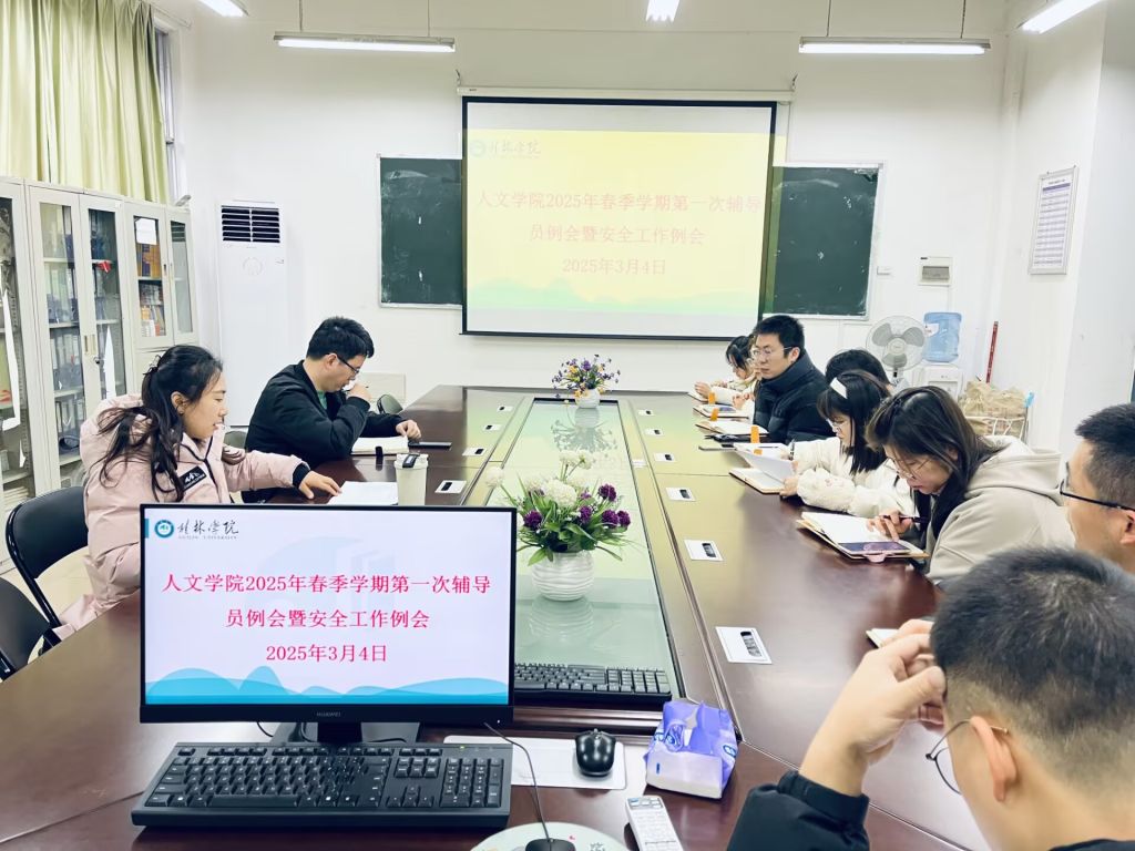 为确保新学期学生工作平稳有序开展,3月4日上午,人文学院在2108会议室召开2025年春季学期第一次辅导员例会暨安全工作例会。学院党总支书记、副书记以及全体辅导员参加会议。