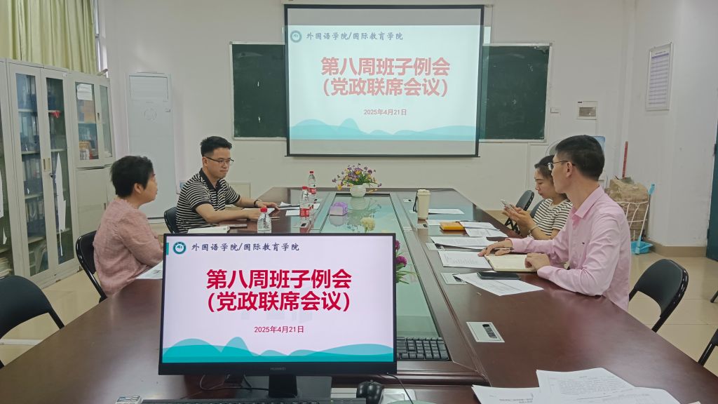 4月21日下午,外国语学院(国际教育学院)在至善楼2108会议室召开学院调整设置后的第一次党政联席会议,副校长、学院院长何玲出席会议,全体领导班子成员参加会议。会议由学院党总支书记主持。