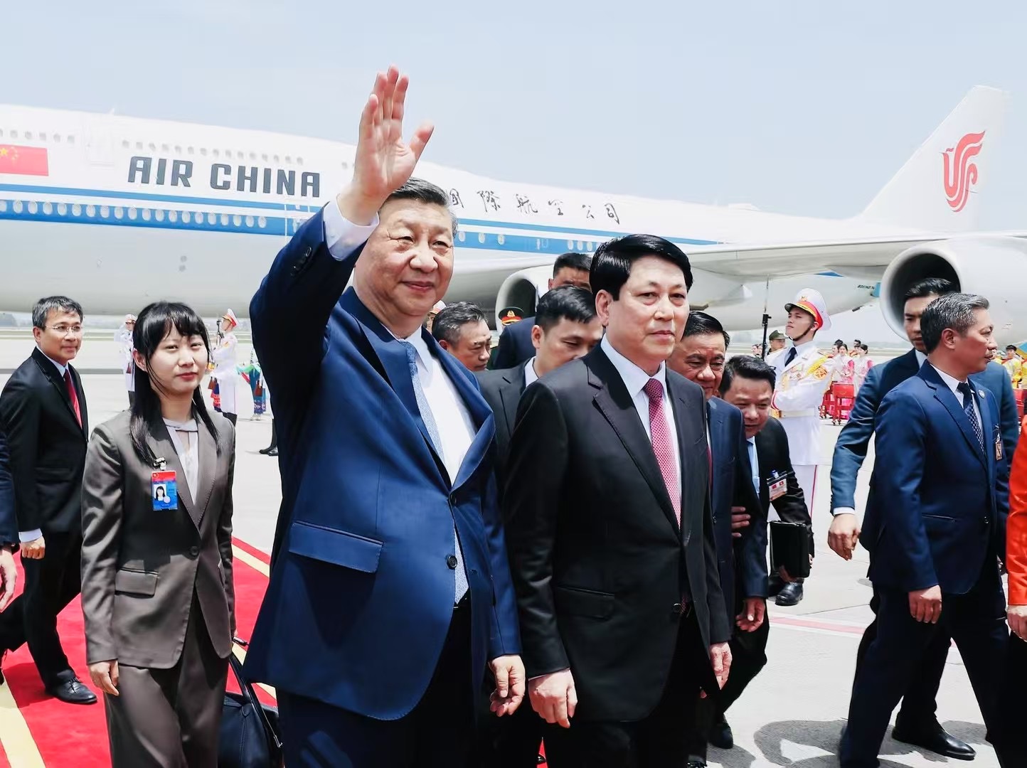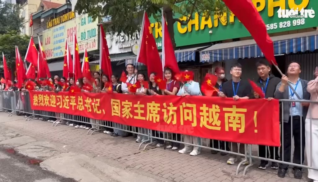 应越南共产党中央委员会总书记苏林、越南社会主义共和国主席梁强邀请,中国共产党中央委员会总书记、中华人民共和国主席习近平于4月14日至15日对越南进行国事访问。我校2022级越南语专业全体学生在中国驻越南大使馆统筹安排下,在河内参与了迎接主席的活动。