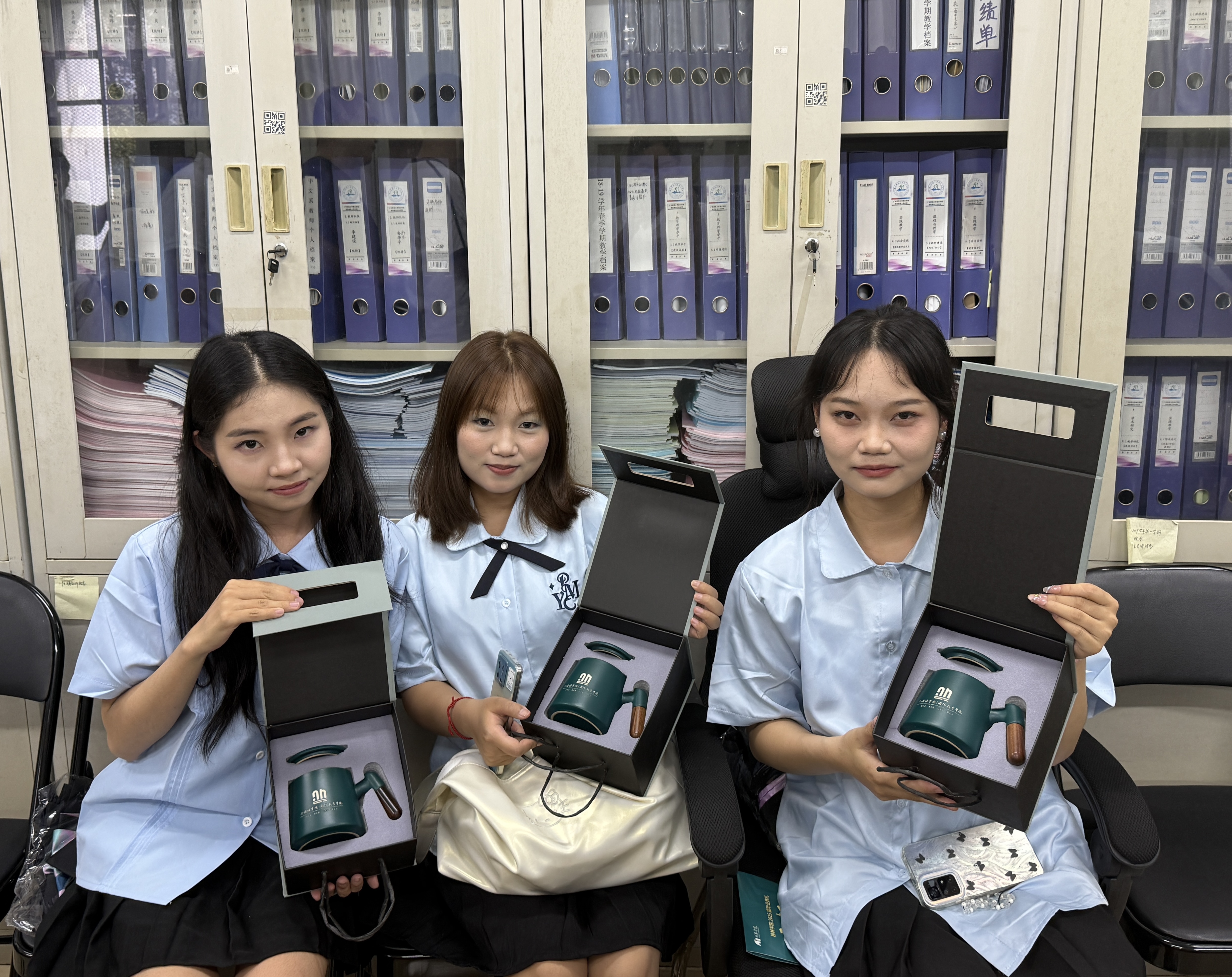 当毕业生们接过礼物时,他们轻轻抚摸着杯子上的字迹,仿佛触摸到了校园生活的点点滴滴。有同学激动地说:“没想到学院为我们准备了这么用心的礼物,这个杯子我一定会好好珍藏。以后每当我看到它,就会想起老师们在讲台上的辛勤付出,想起和同学们一起为了梦想拼搏的日子。”还有同学表示,这份礼物就像一根无形的线,将他们与学院紧紧相连,即使未来天各一方,这份情谊也永远不会褪色。