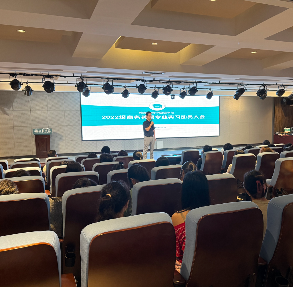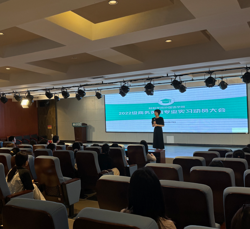 为助力2022级商务英语专业学生顺利完成从校园到职场的过渡,提升其专业实践能力和职业素养,明确实习目标与要求,6月25日上午,外国语学院于至善讲堂召开2022级商务英语专业实习动员大会。学院领导、专业教师代表及全体即将参加实习的商务英语专业学生齐聚一堂,共同开启这场意义非凡的动员之旅。