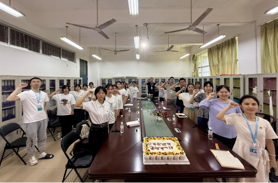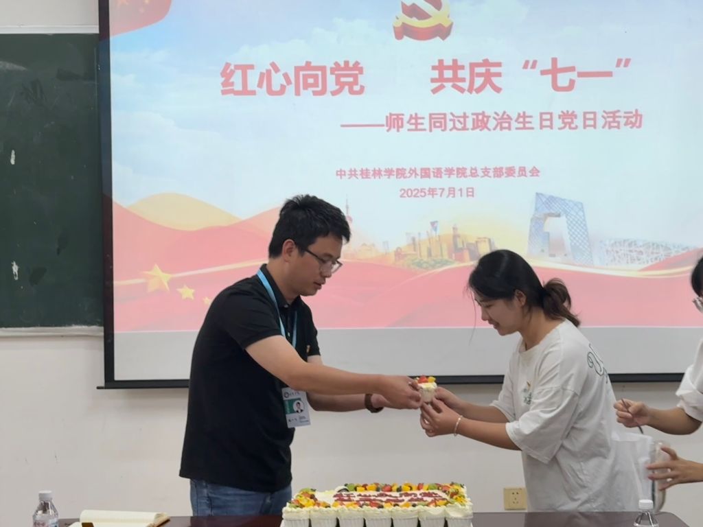 为热烈庆祝中国共产党成立104周年,增强党员的身份意识和责任意识,激发党员的荣誉感、责任感和使命感,外国语学院党总支于7月1日开展“红心向党共庆‘七一’—师生党员同过政治生日”活动。
