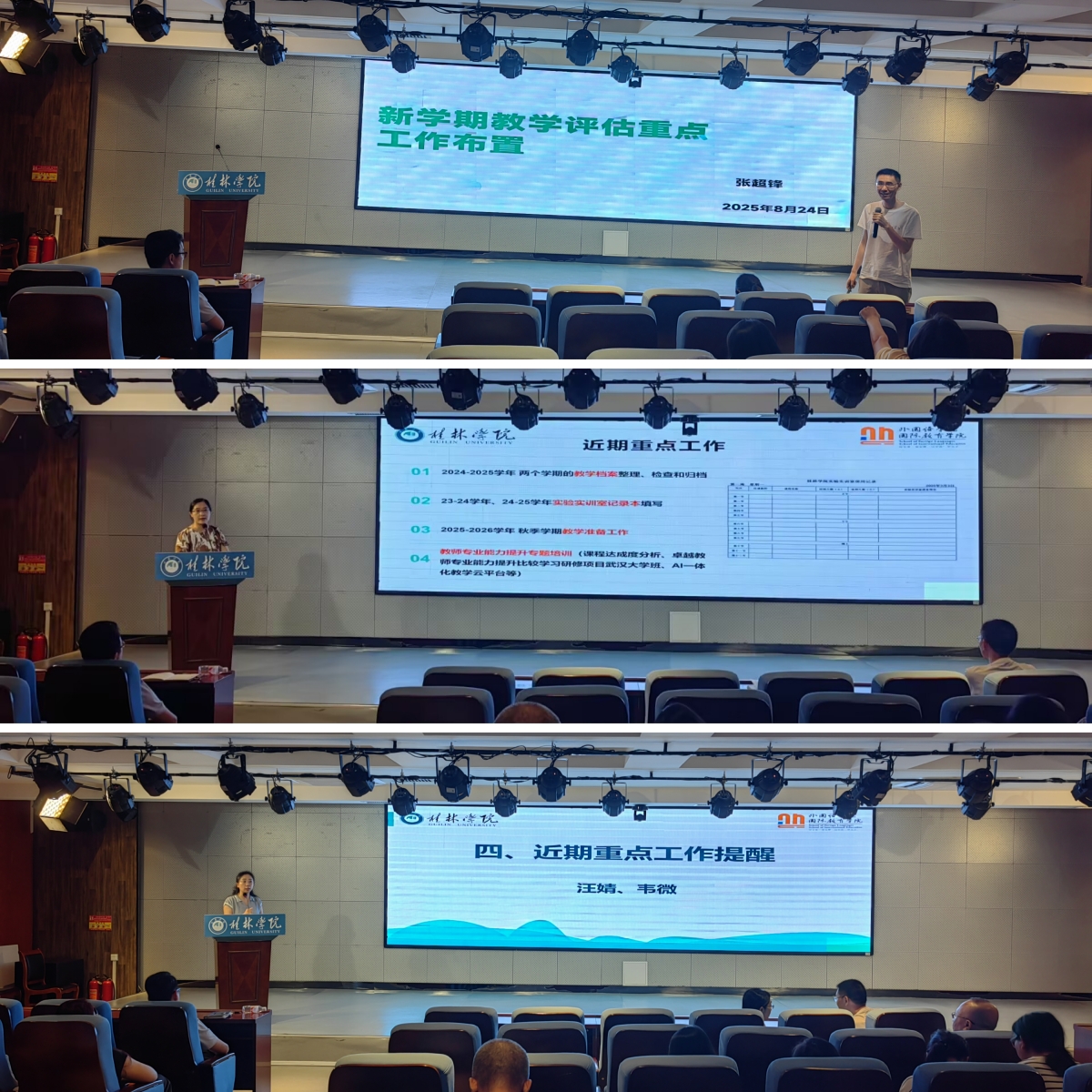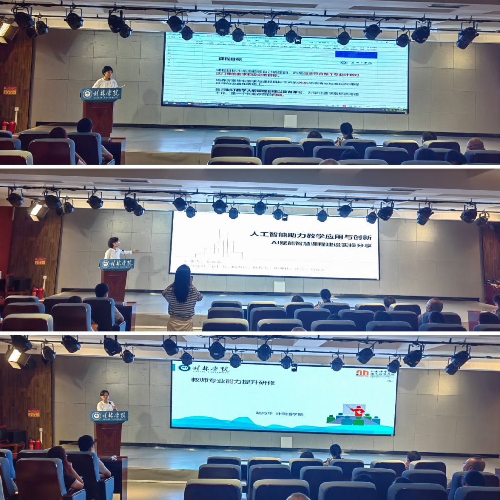 教师暑期进修培训成果分享环节气氛热烈。蒋瑛、苟鑫蕊、陆巧华三位教师结合自身参训收获分别围绕《教学大纲撰写方法》《人工智能助力教学应用与创新》《教师专业能力提升研修》主题,分享学习心得与实践思路,表示将把培训成果转化为提升教学质量、助力评估工作的实际成效。