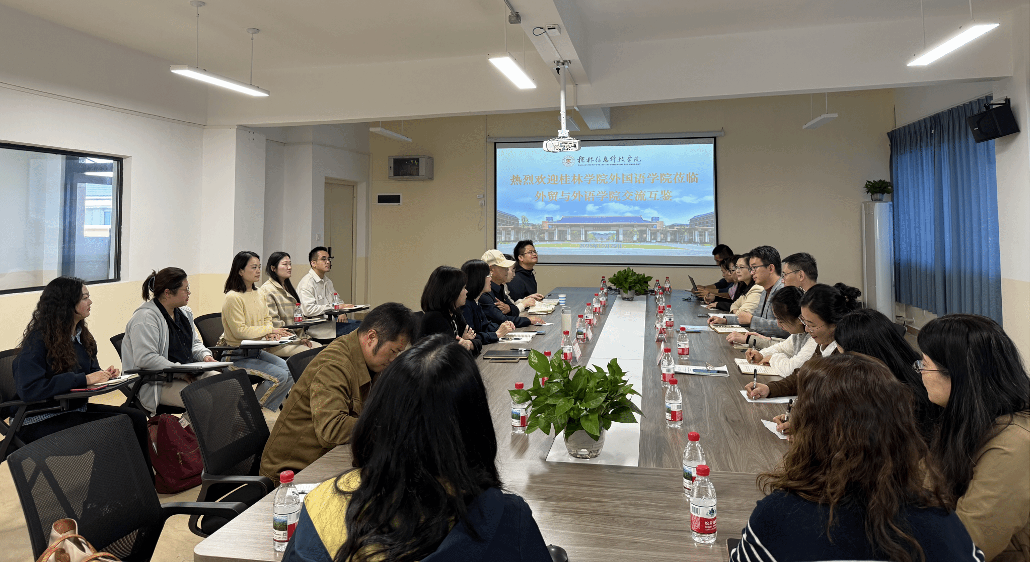 为高效推进本科教学工作合格评估评建工作、精准汲取兄弟院校先进经验,10月29日上午,外国语学院组建专题考察团队,赴桂林信息科技学院外贸与外语学院开展考察学习。双方学院领导班子、专业负责人及教师代表共同参与座谈交流,为评建工作提质增效凝聚共识。