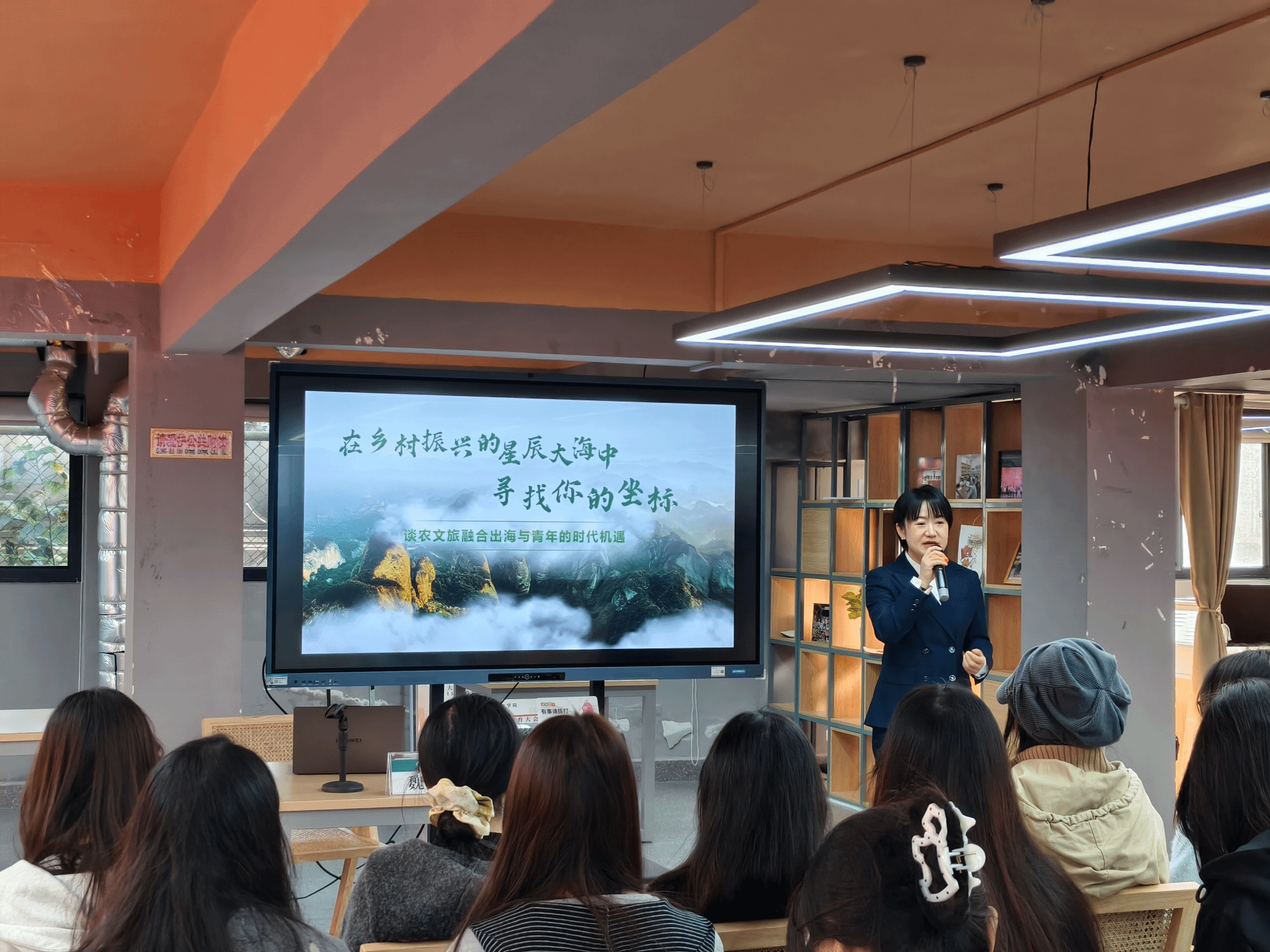 讲座中,魏婷婷以时代发展为脉络,深刻剖析了城市化进程中面临的产业转型、人才流失等现实挑战,同时结合乡村振兴战略的深入推进,生动描绘了乡村在产业升级、生态治理、文化传承等领域蕴含的广阔发展前景。她立足资源县发展实际,从生态旅游资源开发、特色农产品推广、地域文化对外传播等方面,详细介绍了资源县当前发展现状与未来规划,向在场青年学子发出共同建设新农村的诚挚邀约,鼓励同学们将专业所长与乡村振兴需求紧密结合,在基层实践中实现人生价值。