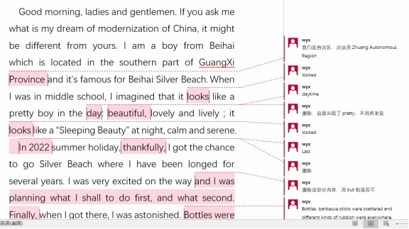 人文学院历来注重课程思政的建设实效,在学校《习近平谈治国理政》多语种版本“三进”工作领导小组和教学研究中心的指导下,通过开展《习近平谈治国理政》多语种版本和《理解当代中国》多语种版本进高校,进教材,进课堂的“三进”工作来提升课程思政的育人效果。此次通过举办“外研社 •国才杯”“理解当代中国”全国大学生外语能力大赛演讲赛道广西赛区校级初赛和决赛挖掘出优秀选手,成立由覃浩、周梦馨、黄彦立、缑娅兰四位老师组成的指导团队,以及杨晓敏老师、覃浩老师组成的赛事管理团队,反复打磨选手演讲稿,精心培训演讲技巧,从定题演讲到即兴演讲,为学生提供全程的指导和帮助,确保选手以最佳状态参赛。
