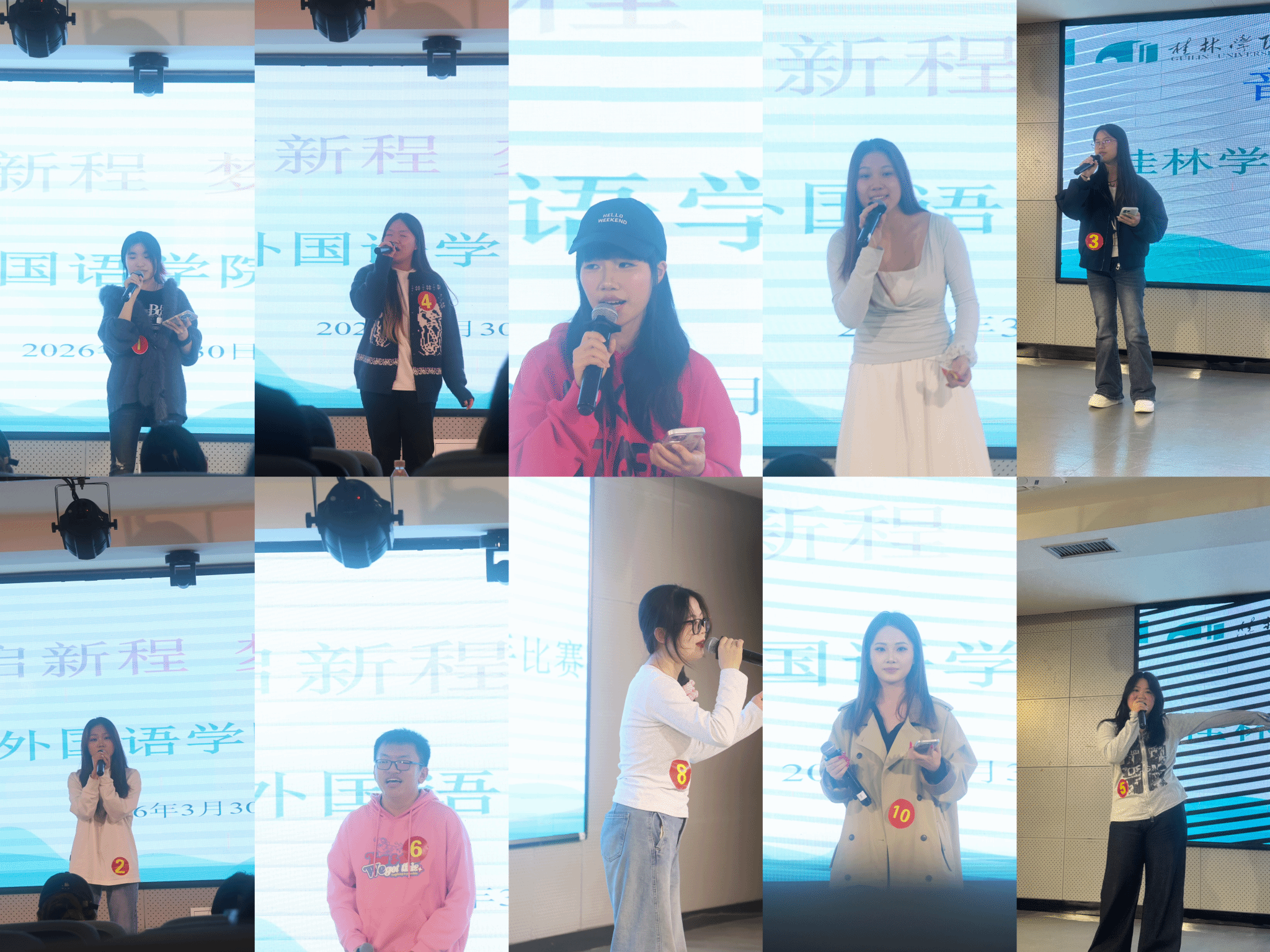 为丰富校园文化生活,彰显学子的青春风采与艺术素养,3月31日晚,外国语学院十佳歌手比赛在至善讲堂圆满举行。本次比赛特邀广西师范大学音乐学院专业教师担任评委,经海选选拔与决赛激烈角逐,最终评选出学院“十佳歌手”,为现场师生献上了一场高水准的视听盛宴。