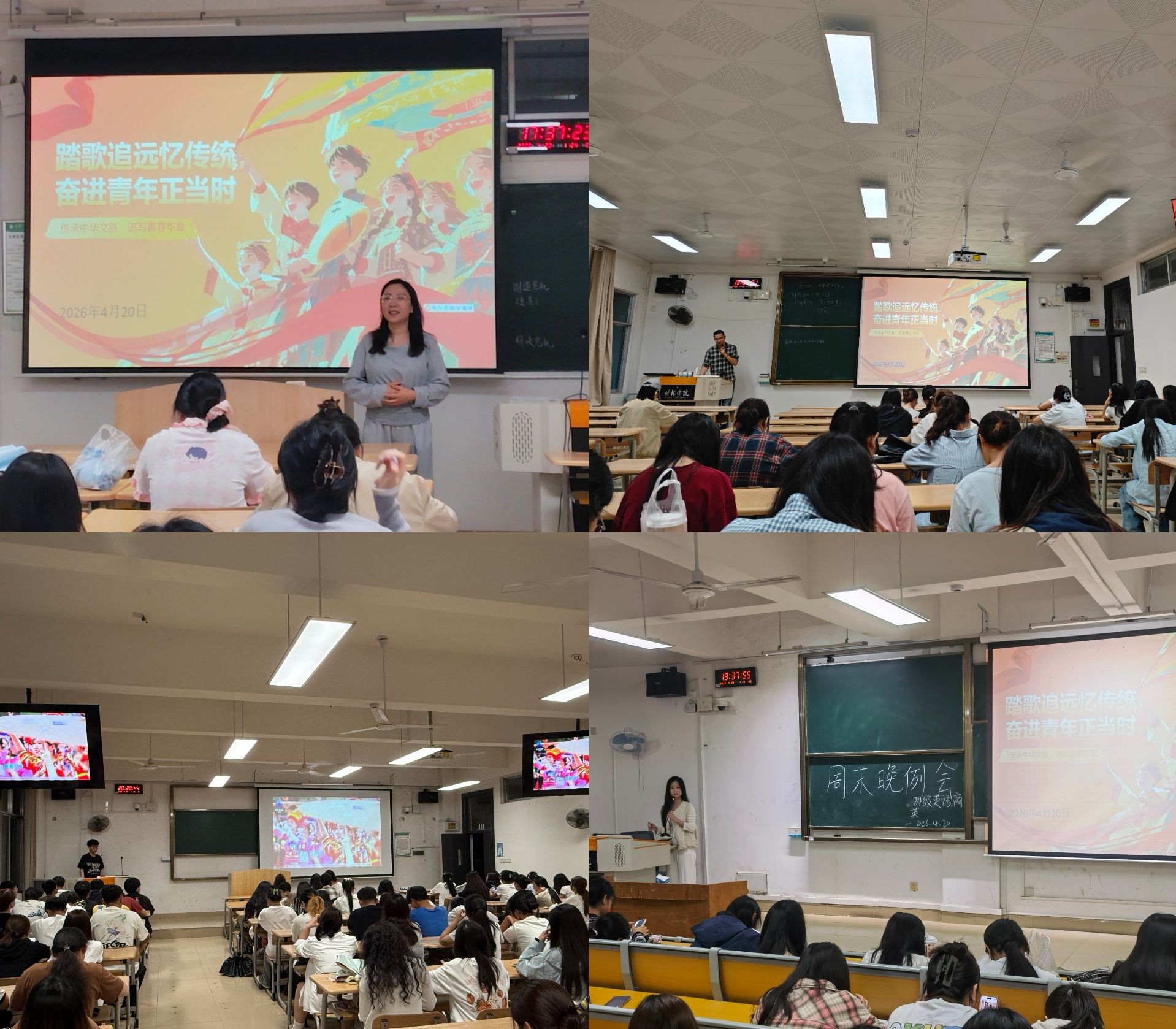 为传承中华优秀传统文化,深化民族团结进步教育,铸牢中华民族共同体意识,4月20日晚,外国语学院以“踏歌追远忆传统,奋进青年正当时”为主题,面向各年级各专业召开主题班会,引导青年学子感悟民族文化魅力,凝聚民族团结奋进力量。