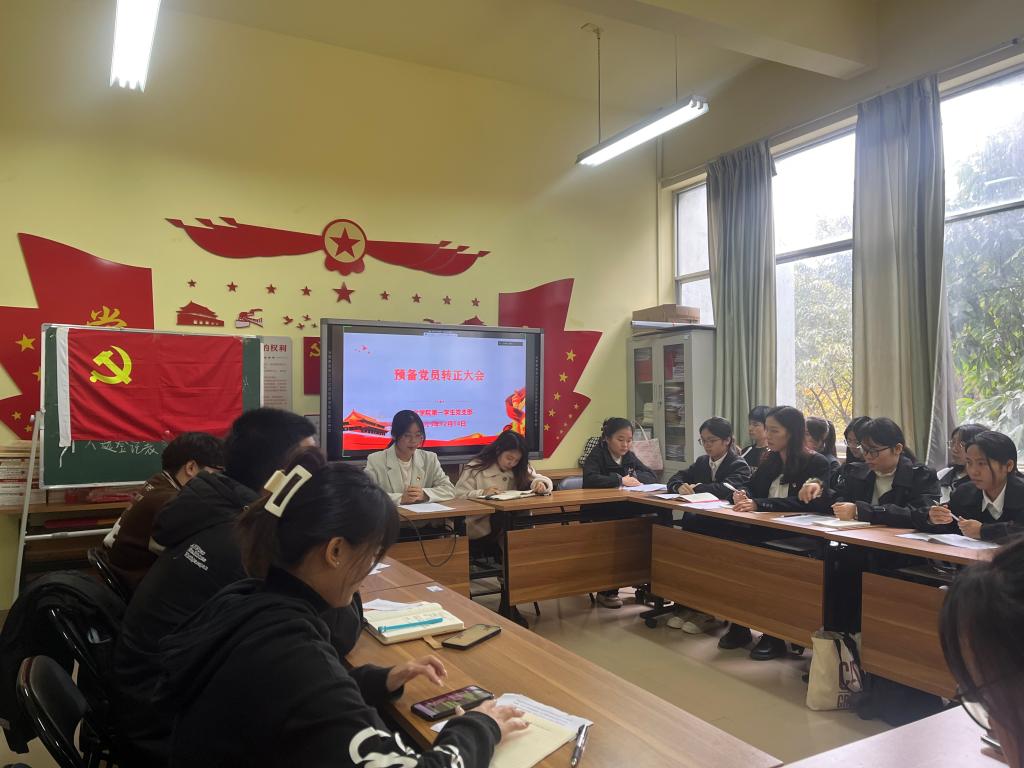 12月14日,第一学生党支部在党建活动室召开预备党员转正大会,审议、讨论、表决覃伶等6名预备党员的转正申请。转正大会由张鹤榕同志主持,党支部全体成员参与。
