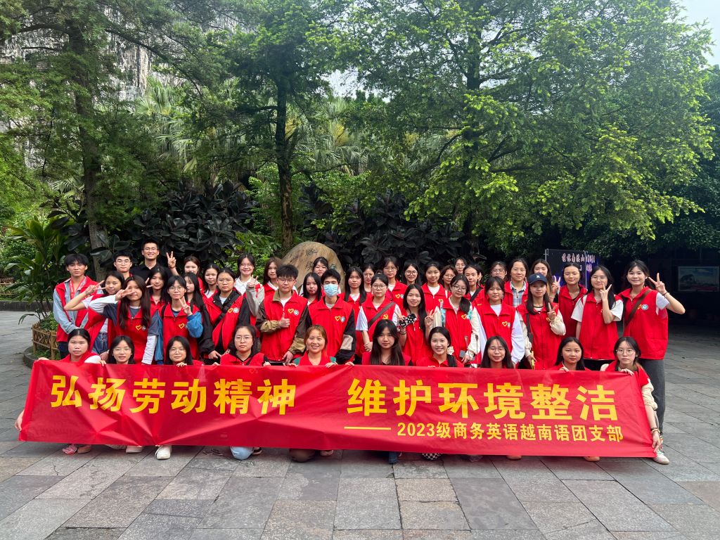 为响应习近平总书记提出的“劳动最光荣、劳动最崇高、劳动最伟大、劳动最美丽”号召,深入学习贯彻习近平新时代中国特色社会主义思想,值此劳动节来临之际,4月21日,学院2023级商务英语越南语团支部前往象山景区组织开展“弘扬劳动精神,维护环境整洁”主题团日活动。