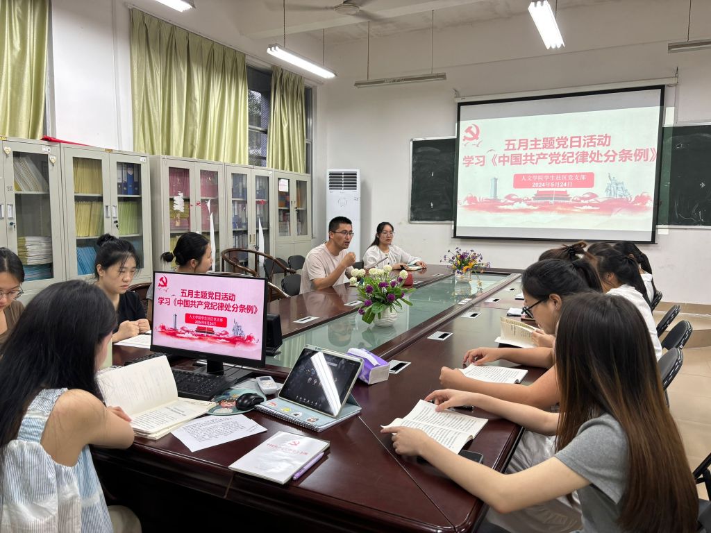 为进一步严明纪律作风,增强纪律意识,强化思想武装,增强行动自觉,5月24日,学生社区党支部在2108会议室专题学习《中国共产党纪律处分条例》,支部全体党员参加学习。