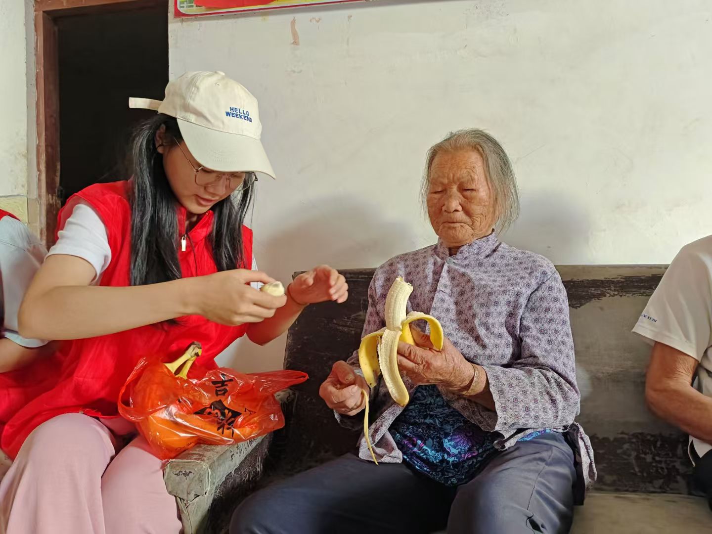 交谈过后,支部成员们又主动帮助老人打扫卫生、割草、喂鸡,尽绵薄之力为老人们分担农活。临近中午,同学们和老人一同烧水煮面,大家围坐在一起聊家常、品尝热气腾腾的面条。活动将近尾声,同学们也为老人们送上最真挚的节日祝福:祝愿他们身体健康、岁岁平安。