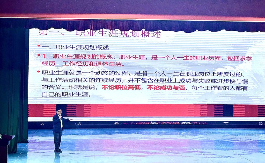 讲座中,孙老师首先为同学们概述了职业生涯规划的基本概念,强调了职业规划对于个人成长和未来发展的重要性。随后,他详细阐述了大学生职业生涯发展的理念与原则,鼓励同学们要树立正确的职业观,积极面对未来的挑战。孙老师重点讲解了大学生毕业后如何就业的问题,分享了许多实用的求职技巧和经验。他提醒同学们,要时刻关注行业动态,不断提升自己的综合素质,为将来的就业做好充分准备。
