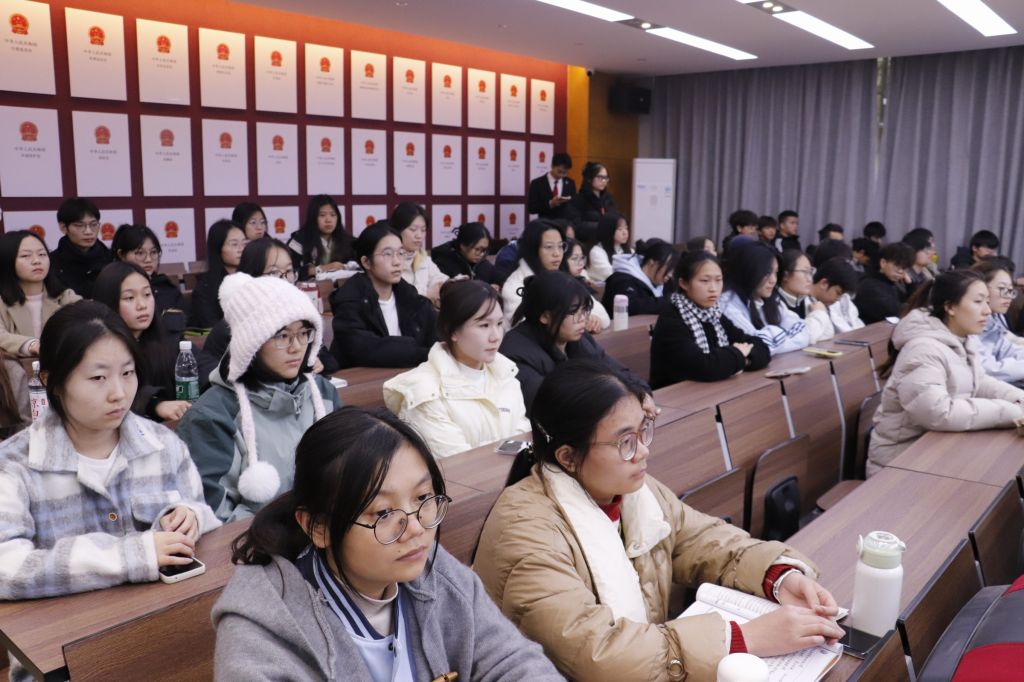在反腐专题讲座中,雁山区人民法院肖雄法官以国际反腐日为切入点,围绕雁山法院受理的真实案例,指出当代大学生要学法、知法、守法、树立反腐意识,做一名洁身自好、遵纪守法的清廉学生。