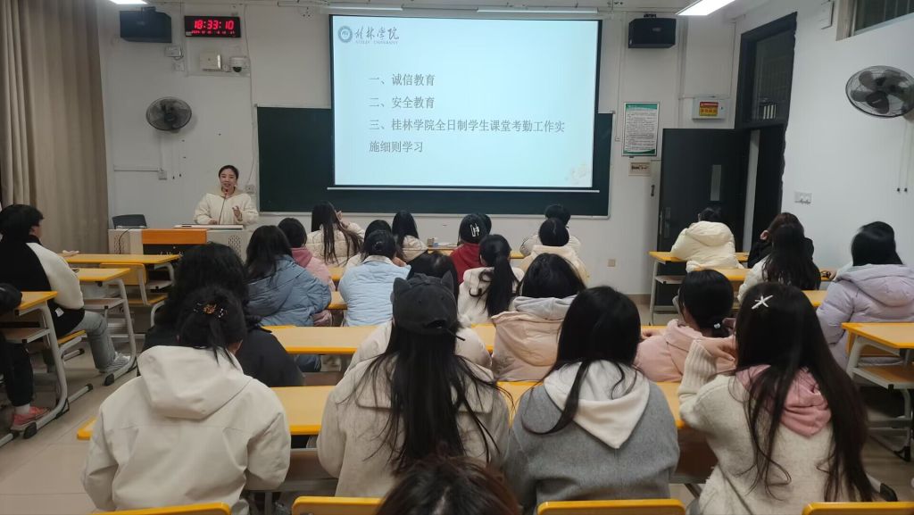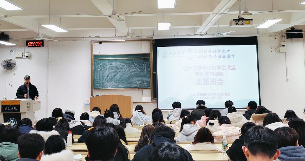 为强化班级管理,加强学风建设,人文学院近期开展了以诚信考试教育和桂林学院全日制学生课堂考勤实施细则为主题的班会。