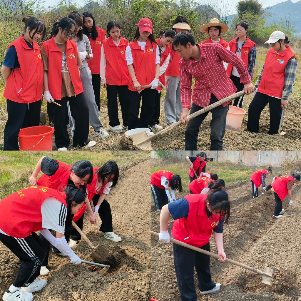 随后,志愿者团队前往大埠乡陶家村开展“垄上生金·芋助振兴”劳动志愿服务活动,通过知识传授、田间劳动与感悟交流,与村民共绘乡村振兴新图景。村民用通俗易懂的语言、结合实操为志愿者们讲解芋头科学育苗。随后,志愿者们结成“互助小组”,挥锄开沟、协同栽苗,在烈日下完成数亩芋田种植。田垄间“红马甲”与村民并肩劳作的场景,成为一道动人风景。
