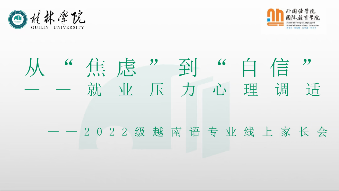 为加强家校沟通,凝聚教育合力,5月30日晚,外国语学院党总支副书记主持召开了主题为《从焦虑到自信——就业压力心理调适》的家长会。本次家长会旨在搭建家校互动平台,让家长更重视孩子心理发展,提前谋划即将到来的就业工作,共同探讨教育良策。