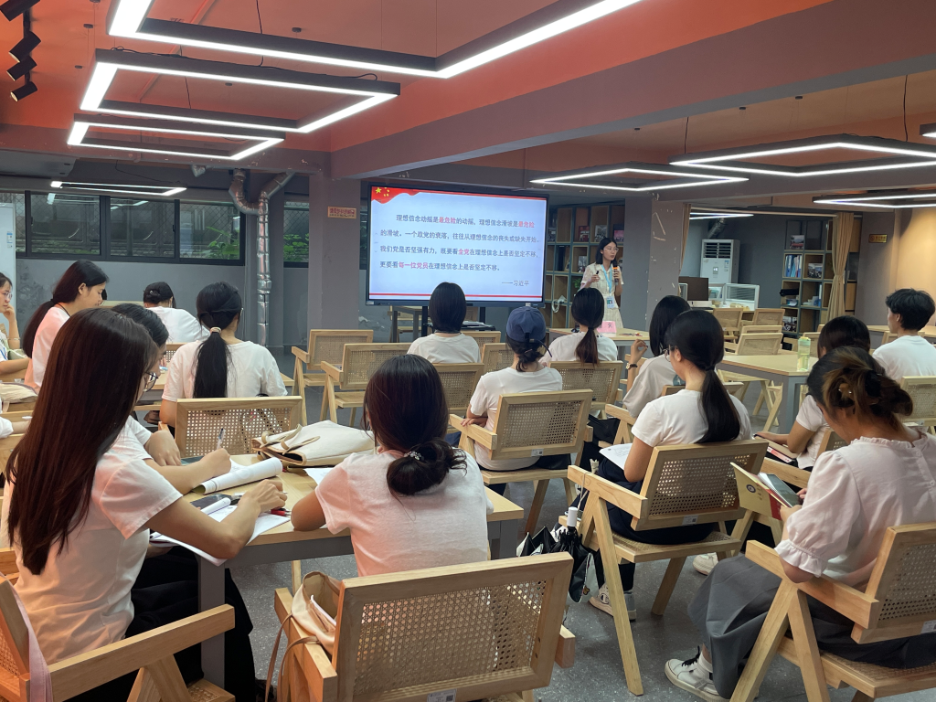 为筑牢青年思想根基,凝聚奋进力量,6月19日晚,外国语学院在学生社区党团活动中心开展“坚定信仰,永远跟党走”理论授课讲座。本次讲座由马克思主义学院刘莹老师主讲,外国语学院青马班学员齐聚一堂,共同接受思想洗礼。