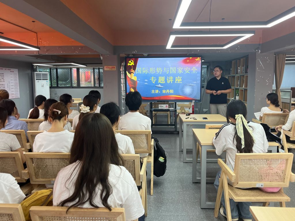 6月25日下午,外国语学院在党团活动中心成功举办了青马班专题讲座暨结业仪式。本次活动旨在提升青年学生的政治素养,增强他们对国际形势与国家安全的认知,为国家培养更多具有坚定信仰和国际视野的青年人才。讲座特别邀请了教育与音乐学院党总支副书记宋老师担任主讲嘉宾,为学员们带来了一场深刻而精彩的报告。