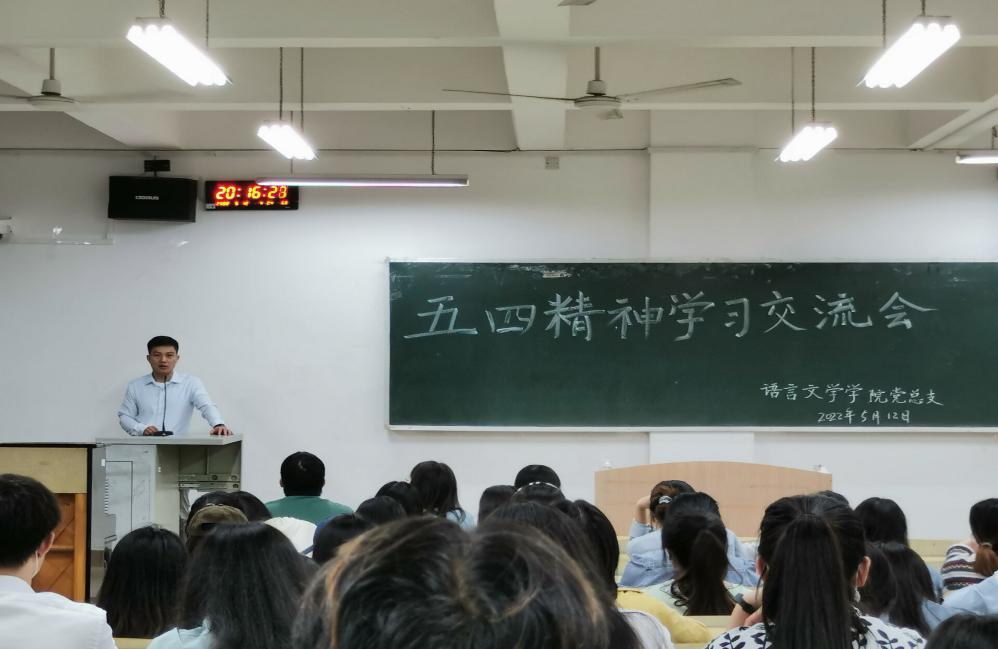 为勉励我院入党积极分子弘扬五四精神,牢记使命担当,谱写青春华章,5月12日,语言文学学院党总支在至善楼1214教室召开了以五四精神为主题的学习交流会,语言文学学院党总支书记江仿、党建工作站指导老师闭彬彬、全体入党积极分子参加活动。