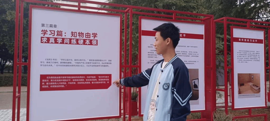 活动中,同学们依次参观学习了党史、优秀先进人物、党风廉政建设、革命精神等一系列主题教育内容。在长廊的珍贵图片和展板前,大家驻足观看,回顾建党百年伟大历程,重温苦难辉煌的峥嵘岁月。2022级商务英语专业唐果果同学参观后说到,我们作为新时代青年,更应积极响应党的号召,为实现中华民族伟大复兴的理想而奋斗,为接下新时代富强祖国的担当而吃苦,只有主动接下民族复兴的接力棒,才能继续书写新篇章。2022级汉语国际教育专业张梓柒同学参观后说到,在中国共产党的领导下,中华民族创造了无数辉煌成就,在这片土地上抛头颅、洒热血,为国家付出青春,让人民收获幸福。作为一名新青年,我们更应该主动作为,像优秀党员看齐,努力学习科学文化知识,奋勇直前,实现自我价值。