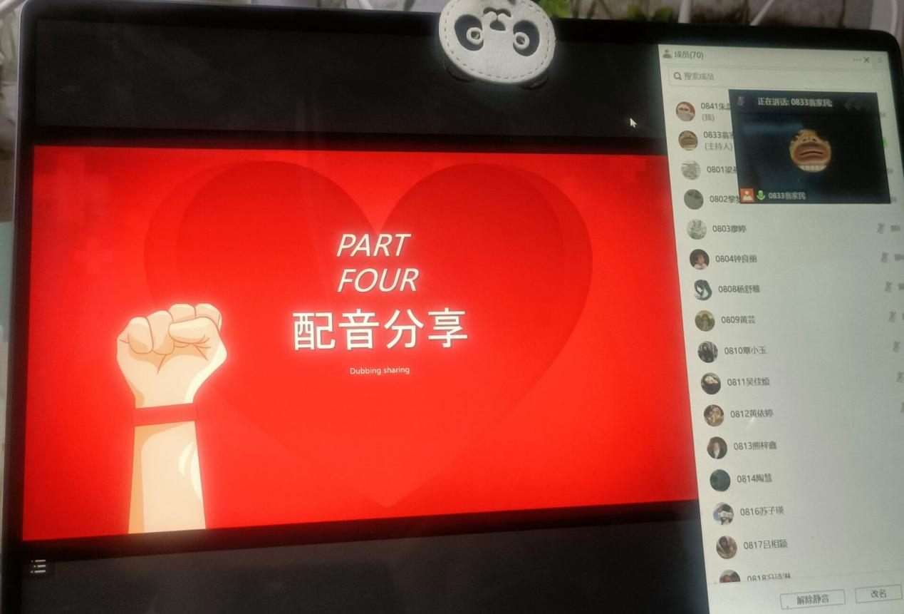 活动伊始,全体成员齐唱团歌,接着主持人宣读本次团日活动的背景及意义并播放了与本次活动相关的视频;随后各班班长对学校疫情防控要求规章制度进行了一次重温,警示同学们一定不能放松。接着是支部同学们的红色配音分享,同学们用生动形象、铿锵有力的声音向我们展示了新时代青年昂扬风貌。最后,辅导员银英老师进行总结发言,她指出,我们广大青年学生要时刻关注自身身体状况,严格遵守学校和所在地区的疫情防控要求,克服各种困难,迅速调整学习、生活状态,主动将个人“小我”融入国家和民族“大我”之中,以实际行动践行青春誓言。