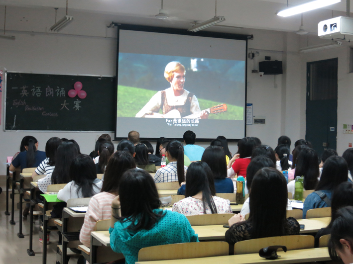 当晚,在主持人精彩的开场白后,外教Matt上台为比赛送上祝福,宣布比赛正式开始。甘开浪同学朗诵的A Forever Friend 为我们诠释了友谊的重要性;李硕瑾同学的I Have a Dream 让我们明白要坚持不懈的追逐梦想……活动过程中,大家还欣赏了电影《泰坦尼克号》、《音乐之声》的经典片段。老师和同学们都被剧中优美的背景音乐和对白深深吸引。其中黄珏蓉、卜楠同学还与大家分享了对影片的感想。大家对原声英语美文和欧美文化有了更深的体会和理解。