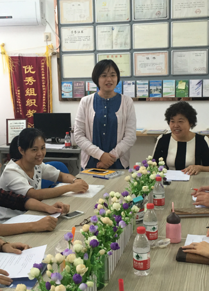 会上,党员教师代表谭敏老师以“立德树人,做漓院好老师”为主题,结合《习近平总书记教师节重要讲话精神》谈了自己的学习感悟与见解,并向其他党员教师分享了自己的学习心得。她提到,党员教师不仅要对自己的教学负责,更要时刻记住自己的党员身份,对自己的言行负责,以身作责,身正为范,发挥老师的引领作用,坚守好课堂这块阵地,用思想武装头脑,做漓院好老师。