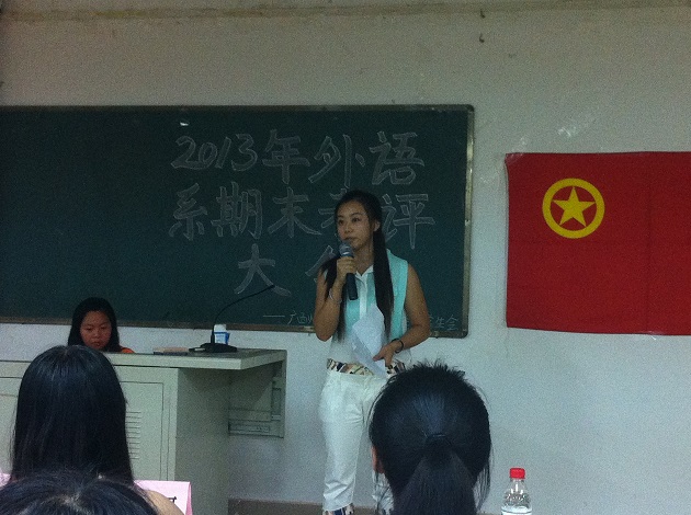 7月14日晚,外语系团总支学生会在001教室举办了2012-2013学年第二学期期末考评大会。出席本次会议的嘉宾有外语系团总支学生会副书记吕佳微,各兄弟系代表以及各支部代表。